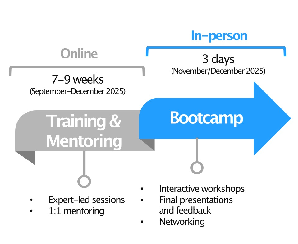 Each programme ends with an in-person bootcamp in a leading European innovation hub, where participants refine their ideas, pitch, and connect with peers and industry. Attendance is required and accommodation is covered if needed.